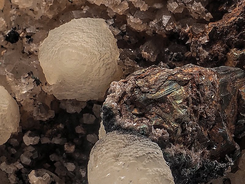 chalkopyrit, kalcit, křemen