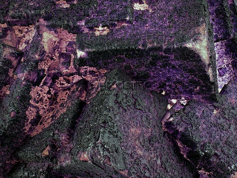 fluorit, křemen, pyrit